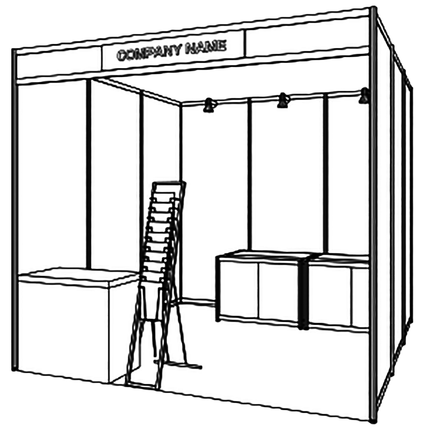 - ※隣接する小間がある場合は、事務局側で仕切りパネル(高さ2.7m)を設置します。但し、角小間の場合、通路側のパネルはつきません。